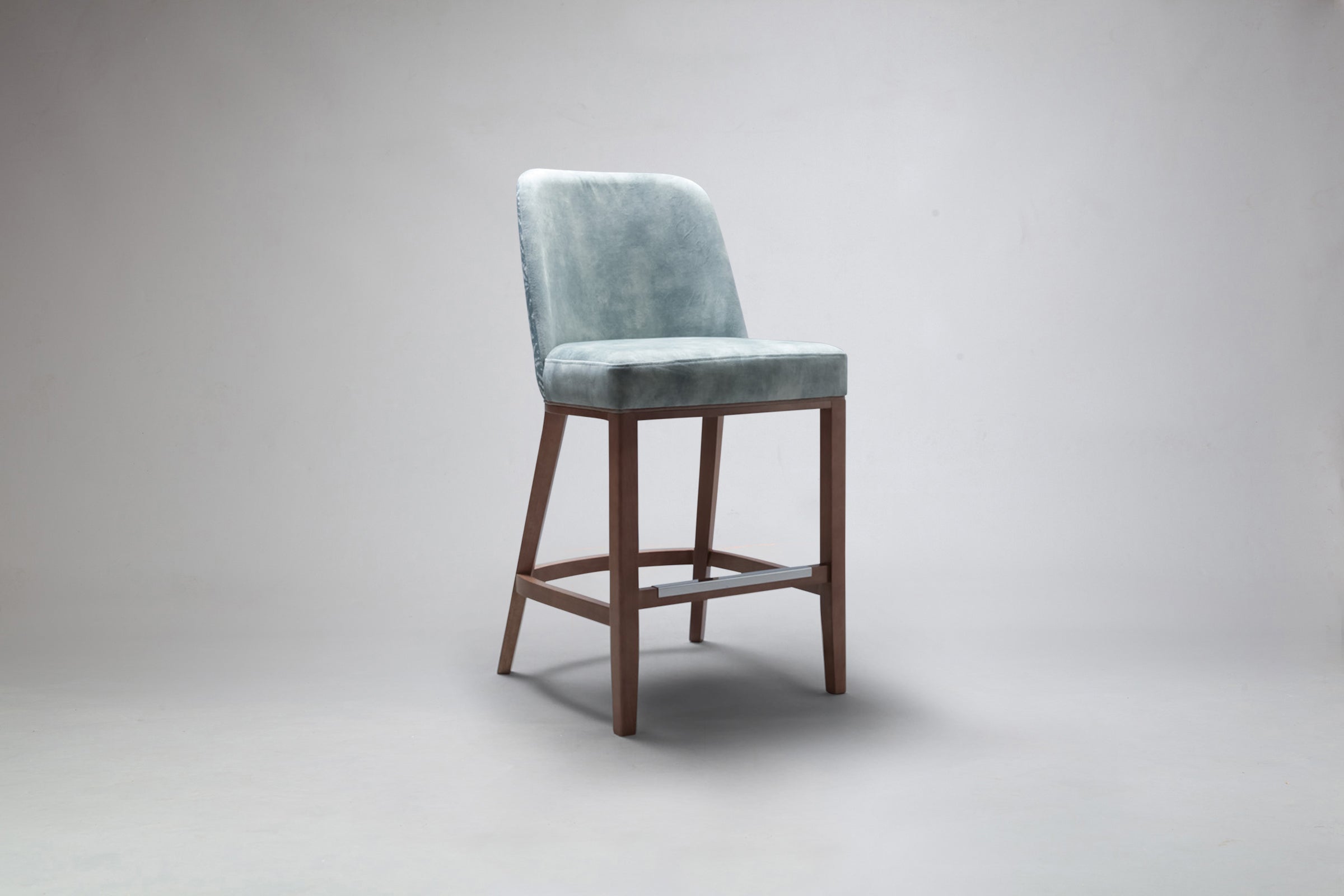 The Elroy Bar Stool features a clean and contemporary silhouette designed to complement a wide range of interiors. Its softly curved back and generously cushioned seat provide a comfortable and supportive sit, while the refined, streamlined shape gives the stool an elegant and understated presence.