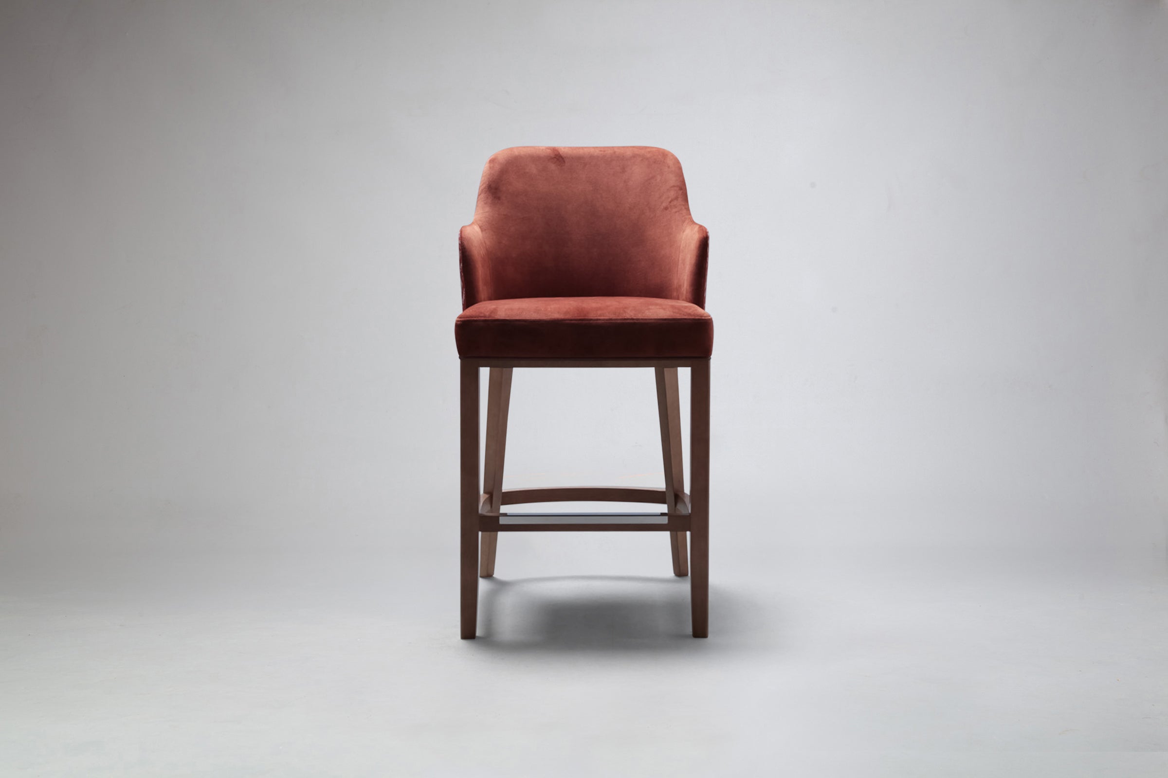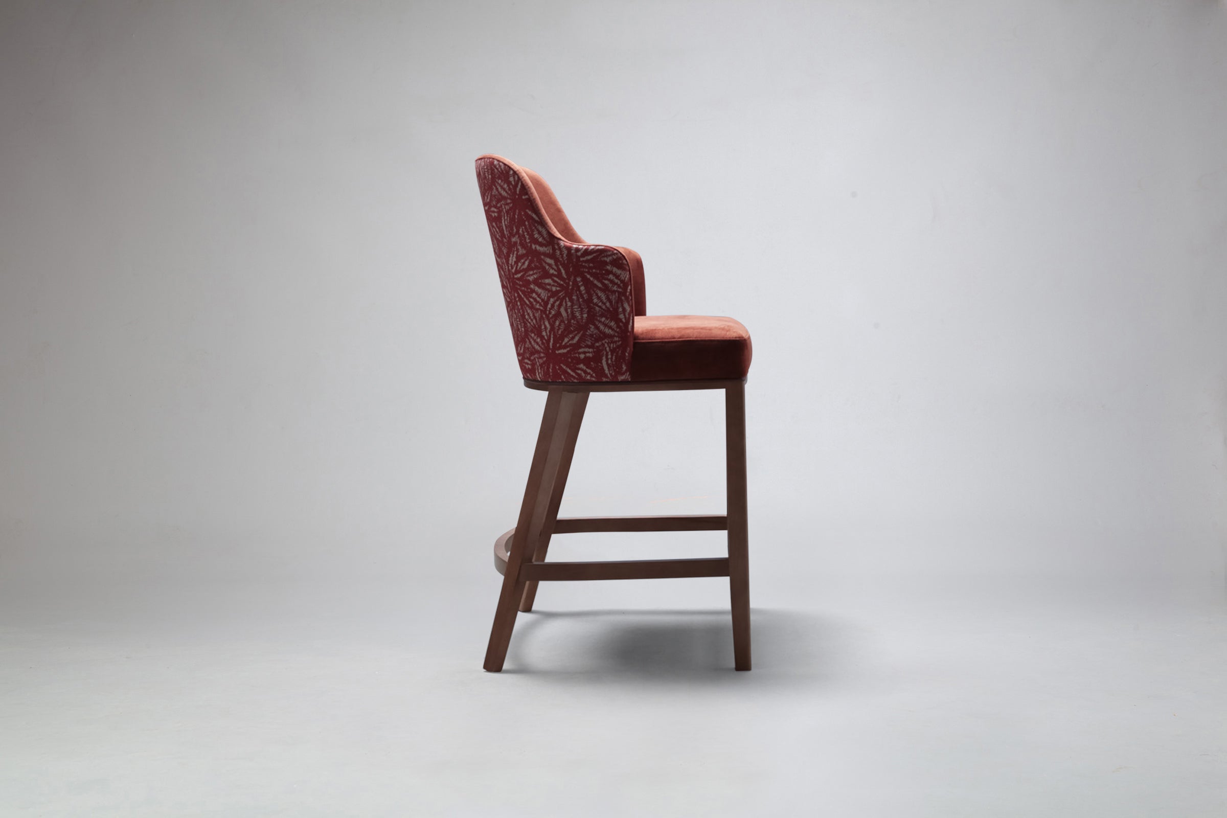 The Elroy Half-Arm Carver Bar Stool showcases a clean, contemporary silhouette with distinctive half-arm detailing that adds both character and comfort. The unique arm design gently frames the seat, while the softly curved back and generously cushioned seat provide a supportive and relaxed place to sit. Its refined proportions and elegant lines give the stool a sophisticated yet understated presence.